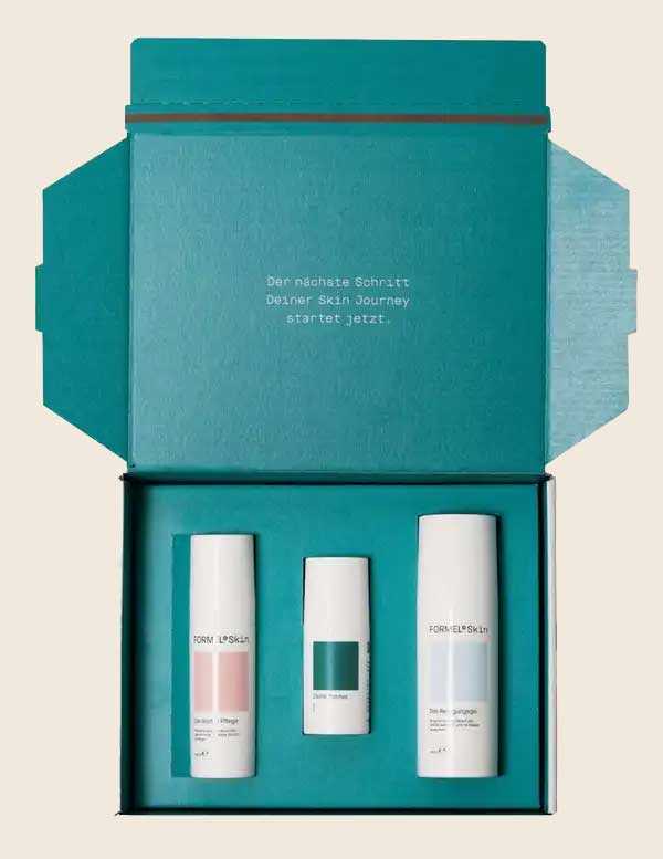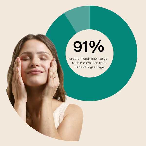 - Ein erfahrenes Ärzt*innenteam stellt eine individuelle Behandlungs- und Pflegeroutine für Dich zusammen. Du erhältst 3 Produkte: Medizinische FORMEL, Pflege & Reinigung.