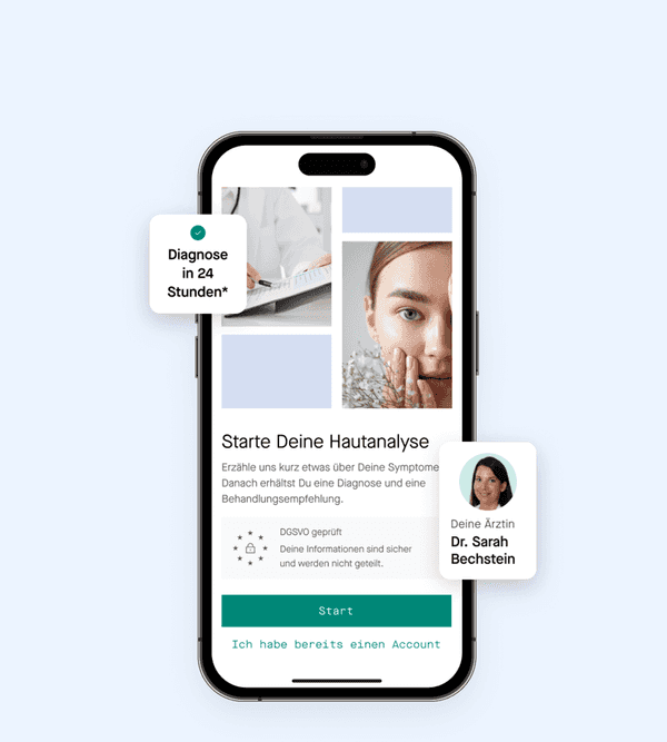 Die Online-Hautanalyse ist eine bequeme und effektive Möglichkeit, um Hautprobleme zu diagnostizieren und zielgerichtet zu behandeln. Die Analyse funktioniert mithilfe unserer eigens entwickelten App, über die Du Fotos Deiner betroffenen Hautstellen hochlädst, um sie von Expert*innen auswerten zu lassen.